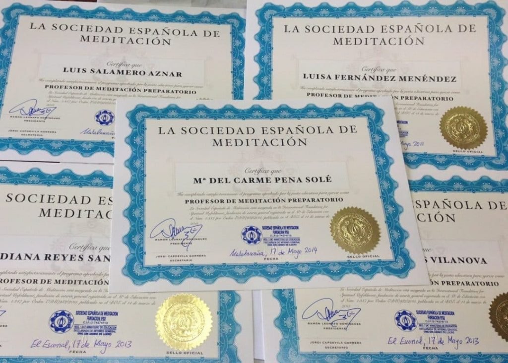 Se obtiene una vez que se ha obtenido el certificado de profesor preparatorio y una vez que se han acumulado 390 créditos. La Sociedad Española de Meditación convalidara otras formaciones recibidas en otras escuelas a través de su comité de educación. Si has seguidos cursos de profesor de Yoga, MBSR etc… tus calificaciones y créditos adscritos a estas serán considerados a la hora de tener los créditos suficientes para ejercer como profesor de la Sociedad Española de Meditación y la Fundación IFSU.